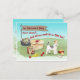 Moving Wire Haired Fox Terrier Dog Stuff Our New Home Postcard is funny and the perfect easy way to let all of your friends and family know where you are. The design features a banner flag for your name and your cute Wire Haired Fox Terrier's name. The announcement comes across loud and clear-Have moved! just underneath the flag. Your Wire Haired Fox Terrier announces that all of their stuff fit in one box, including his favourite bone, ball, red kong and yes, even his rubber chicken. All of this is set on grassy green and sky blue watercolor background. ALL OF THE TEXT on the front and back of this postcard is editable. Just click the PERSONALIZE OPTION and make it your own. You will find this cute Wire Haired Fox Terrier moving announcement post card along with tons of other breeds in our FUNNY DOG MOVING ANNOUNCEMENT POSTCARD collection in our store. We have more than 60 breeds, but if you don't find yours, message us and we will make it happen. All this designed by stationary designer Nancy Lambert, who can speak from experience about moving with dogs.