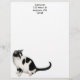 Original fine art design of Moxie, a rescued cat owned by the parents of the artist, Carolyn McFann on customisable letterhead for feline fans.