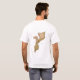 An editable title and slogan accompanies the motif within a red triangle with green, black and yellow bands to the right of the Mozambican flag on the front of this t-shirt. The back displays a detailed map of Mozambique.