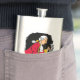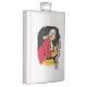 The product is a good size and came exactly as it was pictured. The lid is not attached to the flask, which could be dangerous on drunken nights... The print came out surprisingly well and looks very sharp. Would definitely recommend.
