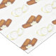 Tablecloth print features an original marker illustration of a row of fried mozzarella sticks and hunks of mozzarella cheese.