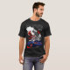 I give wanted to give this a 4 instead of a 5 because these Basic DARK T0shirts run unexpectedly SLIM or Narrow. Which is great if you do not have a potbelly, but I have a paunch. It isn't the shirt's fault that I've got a beer belly. The design and shirt itself is a quality cotton shirt. The color is more of a deep purple, but still a very pretty color. The Basic DARK T-shirts run a bit SLIMMER than the Basic Ts. The neck is a fraction narrower (or seems to be narrower) also. I'm a paunchy middle-aged woman and my neck is 12 inches (31cm) thick and the neckline fell about the same as in the photo of the man, and I had the desire to tug it a bit. So if you're a thick necked man or like loose shirts, be aware these are slimmer shirts. Once I get rid of my lockdown paunch it'll look great. The shirt washed well in cold water with no apparent bleeding. We don't have a dryer, so it hung dry. Did not shrink. Love the colors and the design. The design looks smaller on my shirt than it does on the model on-line. But still, it looks good on the shirt. The printing looks as it does on the model, just the size seems fractionally smaller. Washed garment in cold water, hung dry and design appeared unaffected.