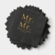Foil wedding napkins feature a handsome "Mr and Mr" text design with custom monogram text that can be personalised with the grooms' names and wedding date.