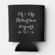 Personalised Mr and Mrs 25th wedding anniversary can coolers. Funny wedding day gift idea for married couple, husband and wife or newly weds. Customisable number of years like 1, 5, 10, 25, 40 etc. Personalizable colours for him and her. Vintage calligraphy handwriting typography design with little love heart arrow. Make your own his and hers beverage holders for beer and other drinks. Add your own surname. Elegant black and white template for twenty fifth year celebration. Custom party supplies and accessories.