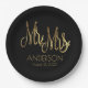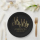 Mr. and Mrs. Black and Gold Elegant Add Name Date Paper Plate
