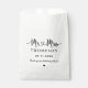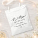 Elegant custom wedding favour bags include a modern and minimal "Mr and Mrs" design in heart calligraphy script featuring a monogram of the married couple's last name and wedding date in stylish text that can be personalised, along with a simple and sweet thank you message to guests. Note, the black and white colour scheme can be customised to coordinate with your wedding colour scheme.