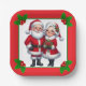 A Cute Red And Green Christmas Paper Plate Of Mr. And Mrs. Santa Claus