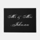 Mr and Mrs door mat for newly weds wedding couple. Make your own custom funny doormat for newlyweds / honeymooners. Add your own welcome message, family name, monogram, surname or funny quote. Cute gift idea for bride and groom with new home / housewarming or engagement / anniverary party. Custom colour background. Vintage rustic country chic script typography. Personalizable doormat sign template. Create your own entry mat / rug for front door / entryway or hall / venue. Customisable home decor / decorations for your house.