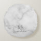Mr and Mrs | Elegant White Marble Modern Script Round Cushion