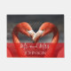 A lovely flamingo photo doormat features two flamingos forming a heart shape with their necks. At the bottom in a red transparent rectangle with a place to customise your name. For a larger mat, you will have to decrease the size of the photo (to prevent blurriness) and adjust your name within the red box. Place your order today.