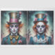 Double design, maximum size 15x20 for each image, choosing the 20x30 sheet. A fun and stylish design inspired by the Mad Hatter from Alice in Wonderland. Bright, vibrant colours like pink, blue, and yellow blend harmoniously, creating a playful yet elegant effect. Perfect for tissue paper for decoupage, it adds a touch of whimsy and originality to any project.