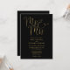This black and gold minimalist elegant script wedding invitation can be personalised with your information in chic typography with your wedding website details and your QR code on the reverse. Designed by Thisisnotme©