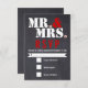 Mr. and Mrs. Modern typography black red chalkboard wedding RSVP reply/response card featuring the Mr. and Mrs. courtesy titles in white, the ampersand in red and the period in white with a red heart in it. This modern and contemporary, elegant wedding template design with has a vintage flair to it. It is fun and trendy and is part of a wedding collection or set fully customisable perfect for a casual rustic winter wedding.