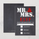 Mr. and Mrs. Modern typography black red chalkboard wedding RSVP reply/response card featuring the Mr. and Mrs. courtesy titles in white, the ampersand in red and the period in white with a red heart in it. This modern and contemporary, elegant wedding template design with has a vintage flair to it. It is fun and trendy and is part of a wedding collection or set fully customisable perfect for a casual rustic winter wedding.