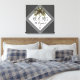 Mr. And Mrs. Newlyweds Beach Wedding Personalised Canvas Print is designed with customisable grey background. It has a pretty green palm tree on the centre of white and grey diamond shape bordered frame. The text is "Mr. & Mrs." in trendy skinny lettering. Newlywed's last name is in calligraphy script lettering. The established year is below the name. Makes a great gift idea for a couple just married!