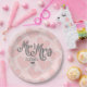 Mr. and Mrs. Pink Heart Pattern Chalkboard Style Paper Plate