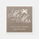 Rustic Mr and Mrs burlap country chic wedding napkins. Elegant white script typography design for classy wedding party. Stylish handwritten calligraphy grey text. Customisable colours personalised with name of bride and groom. Cute little white bow.