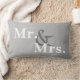 Mr and Mrs typography pillow in grey and white for home decor and wedding gifts.