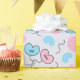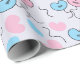 "Mr and Mrs Wedding Balloons Bridal Shower Seamless Wrapping Paper" showcases whimsical "Mr." and "Mrs." balloons floating across the paper, creating a fun and festive design for wedding day presents.