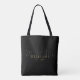 Featuring modern, elegant typography, this chic black-and-gold tote bag can be personalised with your name and special date. Designed by Thisisnotme©
