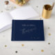 This guest book offers the perfect place for your friends and family to pen their signatures and heartfelt messages. Crafted from premium materials, it features adorable hearts and the titles 'Mr and Mrs' in a sophisticated gold script, all set upon a chic, dark navy midnight blue background. Customise it with your family name and the date of your wedding to make it uniquely yours. This treasured memento will act as a lovely token of your special day for many years.