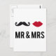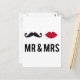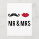mr. and mrs. with moustache and red lips for wedding, marriage, engagement, cards, sticker, gift