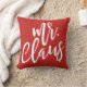 This adorable holiday throw pillow says "Mr. Claus" in a modern white handwritten script. Choose any colour background.