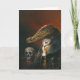 This Greetings card is illustrated with a smiling Victorian Crocodile. In the background is a human scull.