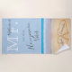 Mr. Dusty Blue Beach Wedding 2 Hearts Sand | His Beach Towel with newlyweds names "Honeymoon vibes", beach towel.