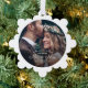 Send joyful holiday wishes as a new Mr. & Mrs! Celebrate marriage as newlyweds and share two of your favourite wedding pictures with a stylish custom photo holiday ornament card. All wording on this template is simple to personalise. (IMAGE PLACEMENT TIP: An easy way to position a picture exactly how you want is to crop it before uploading to the Zazzle website.) The modern minimalist black and white design features simply elegant script typography overlay and 2 photos of your choice. Family and friends will love displaying this unique customised hanging ornament card. Merry Christmas and cheers to merrily ever after!
