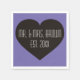 This napkin features a shapely black heart overlaid by customisable template text, featuring the words "Mr. & Mrs." followed by "EST." and the year of marriage. The black heart image is appropriate for engagement parties, weddings, bridal showers, anniversary celebrations, and any occasion that calls for an elegant expression of love.