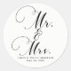 Mr. & Mrs. Black White Script Custom Wedding Favou Classic Round Sticker