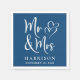 Modern and chic custom classic blue napkins for your wedding reception or other wedding events with "Mr & Mrs" written in a large elegant white script and a white illustration of two hearts joined together. Add your name and wedding date.
