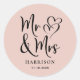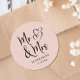 Mr Mrs Blush Pink Wedding Classic Round Sticker