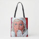 Artwork by Courtney BIndl, Mr. & Mrs. Claus cover both sides of this tote bag