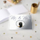 Mr. & Mrs. Black Script Elegant Modern Photo Heart Metalic silver foil background and White Script Wedding Guest Book