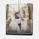 Celebrate your first holiday season as newlyweds with this elegant Mr. and Mrs. First Christmas square photo ornament. Designed with a clean white border and classic modern typography, this double sided ornament allows you to customize both sides with your favorite wedding or honeymoon photos. The front features the phrase First Christmas as Mr. and Mrs. with customizable text for your shared last name and the year, creating a meaningful keepsake that commemorates this special milestone. The back includes another fully customizable photo space, giving you room to showcase even more cherished memories.