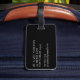 This was purchased as part of a 40th Birthday present for my nephew who is going to Vegas. It is made of high quality, very study and we decided only to put his name on the back of the tag, but you can add a full address if you so wish.