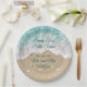 The playful and fun saying, Sandy Toes Salty Kisses... Mr. & Mrs. accent these paper plates on a background of turquoise blue water, beach sand, seashells, starfish and sand dollars, making it a perfect accent for your beach, tropical or destination wedding or rehearsal dinner. These paper plates are further personalised with the wedding date and the happy couple's new last name. If additional items are needed for your wedding just contact us at prettyfancyinvites@gmail.com with your request.
