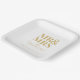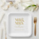 Mr & Mrs Minimal Simple Modern Disposable Square Paper Plates. Personalise the template with your last name and date of your wedding, engagement or anniversary. Perfect for the rehearsal dinner, engagement party or wedding reception. Comes in blush pink, black, white, gold and brown options.
