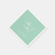 Wedding napkins for a wedding with mint wedding colour. Just white text on mint green background. The words "Mr. & Mrs." are written in an elegant calligraphic script, the names of the bride and groom and the date in smaller caps.
