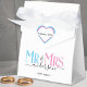 Celebrate your holy matrimony with this cute Mr. and Mrs. wedding party favour thank you box for wedding guests. Customise it by adding your last name / surname and wedding anniversary year date. Pink, blue and black elegant font with heart shape. Great for a bridal shower or anniversary / wedding reception dinner party for a husband and wife.