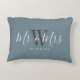 Surprise a couple with this Mr And Mrs Newlyweds Dusty Blue Script Monogram Accent Pillow. It is modern designed on both sides with blue background. The centre has large dark grey monogram letter and the text is "mr and mrs" in white trendy hand lettered script. Established date is below the names. Makes a perfect personalised custom wedding gift idea for newlyweds!