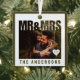 Mr. and Mrs. photo Christmas ornament with heart anniversary year and family name text. Great for newlywed couple's 1st Christmas.