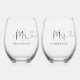 Mr Mrs Script Heart Wedding Stemless Wine Glass