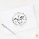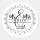 This round shape sticker is shown with a custom name Mr. & Mrs. print, personalise and change the name and year to yours with this template.