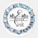 This round shape sticker is shown with a custom name Mr. & Mrs. print, personalise and change the name and year to yours with this template.