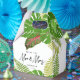 A simple minimalist tropical leaves and black script text "Mr & Mrs" wedding favour box that can be customised to your surname and wedding date. An ideal tropical themed wedding favour box.