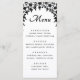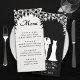 Celebrate your love with this beautiful black and white wedding menu. Designed with an elegant wedding dress and tuxedo under a floral wedding arch, this menu the perfect stationary for rehearsal dinners or wedding receptions. Add the bride and groom's event details for a personalised touch.