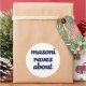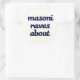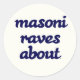 The Masoni Raves About logo on a round sticker you can place anywhere to show your support and readership of the blog.